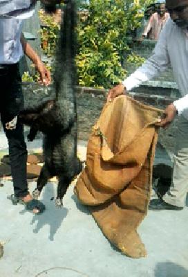 गावात भीती : वनविभागाच्या अधिकाऱ्यांनी घेतले ताब्यात वायगाव (निपाणी) : येथील दूध गंगा वॉर्डातील सुधीर मस्कर यांच्या घराच्या भितींच्या फटीत ऊदमांजर हा दुर्मिळ प्राणी फसलेल्या स्थितीत आढळूून आला. त्याला वनविभागाच्या अधिकाऱ्यांनी काढून ताब्यात घेतले. या प्राण्याला पाहून परिसरातील नागरिकांत भीतीचे वातावरण निर्माण झाले आहे. हा प्रकार रविवारी सकाळी घडला.मस्कर यांच्या घराच्या भिंतीच्या फटीत मांजरासारखा दिसणारा प्राणी फसल्याचे नागरिकांना दिसून आले. त्यांनी याची माहिती मस्कर यांना दिली. या प्राण्याची जवळून पाहणी केली असता हा प्राणी मसन्याऊद(ऊदमांजर) असल्याचे गावातील काही नागरिकांनी सांगितले. तो लहान मुलांवर हल्ला करीत त्यांना जीवे मारत असल्याचे काही ज्येष्ठ नागरिकांनी सांगितल्याने गावात भीती पसरली.नागरिकांची याची माहिती दूरध्वनीवरून वनविभागाच्या अधिकाऱ्यांना दिली. माहिती मिळताच वनविभागाचे अधिकारी घटनास्थळ गाठले. यावेळी दीपक तिजारे, मुळे, कांबळे, कस्तुभ गावंडे, एल.पी. पवार यांनी घटनास्थळ गाठत या मांजरीला ताब्यात घेतले. गावातील राहुल हिंगे, किशोर तराळे, नितीन वाघ, प्रफुल उगेमुगे आदींची उपस्थिती होती. या प्राण्यालापकडून पोत्यात बंद करून जंगलात सोडण्यात येणार असल्याचे वनविभागाच्या अधिकाऱ्यांनी सांगितले.(वार्ताहर)