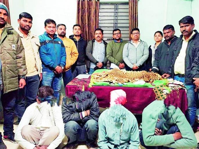 गोपनीय माहितीच्या आधारे बिबट्याच्या कातडीची तस्करी करणाऱ्या चौघांना अटक करण्यात आली आहे. या प्रकरणात आणखी काही आरोपी असून त्यांचा शोध घेतला जात आहे.