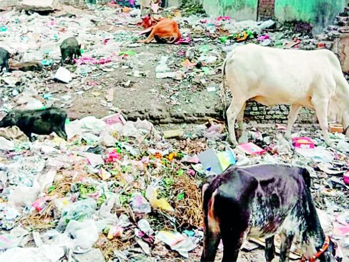 डुकरांचा मुक्तसंचार, शहरात अस्वच्छतेचा कळस