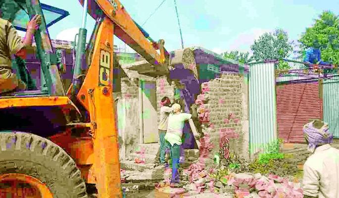 लोकमत न्यूज नेटवर्कअल्लीपूर : येथील नागरिकांनी अतिक्रमण करून सिमेंटची पक्की घरे बांधली आहे. त्यांना ग्रामपंचायतीकडून अतिक्रमण काढण्यासंदर्भात नोटीस बजावण्यात आली. परंतु याकडे कानाडोळा केल्याने अखेर ग्रामपंचायत प्रशासनाकडून अतिक्रमणावर गजराज चालविण्यात आला.गावातील गळोबा वॉर्डमधील कलोडे व कारवटकर या दोन व्यक्तींनी अतिक्रमण केले होते. त्यांचे अतिक्रमण काढण्यासंदर्भात ग्रामपंचायतीने ठराव घेतला होता. ग्रामपंचायतीने लेखी स्वरूपात या दोन्ही व्यक्तींना रीतसर नोटीस बजावली होती. मात्र, या अतिक्रमणधारकांनी ग्रामपंचायतीच्या नोटीसला न जुमानता सिमेंट रोडलगत बांधकाम केले. ग्रामपंचायतीने या संदर्भात पंचनामा करून पोलीस संरक्षणात अखेर गजराज चालवून अतिक्रमण हटविले. यावेळी पंचायत समितीचे विस्तार अधिकारी सुनीता भोले, मंडळ अधिकारी संजय भोंग, ग्रामविकास अधिकारी दत्तात्रेय दिवटे, सरपंच नितीन चंदनखेडे, उपसरपंच विजय कवडे, ग्रामपंचायत सदस्य हारुन अली, सतीश काळे, गजानन बगवे उपस्थित होते. गावातील आणखी अकरा व्यक्तींनी अतिक्रमण केले असून तेही लवकरच हटविले जाईल, असे सरपंच चंदनखेडे यांनी सांगितले.
