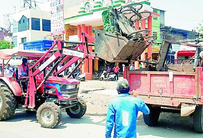आर्वी नाक्यावरील अतिक्रमणावर चालला गजराज