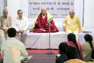 सामदोंग रिंपोंछे : ‘वर्तमान समस्यांबाबत गांधी चिंतनाची उपयोगिता’ यावर प्रबोधन सेवाग्राम : आज देशात मानवी विकासाचे काम करण्यात येत आहे. धर्म, सांप्रदायिकता यातील भांडणे मानवाला मानवापासून दूर नेण्याचे काम करीत आहे. मानवाचा विकास हा राजकीय विषयाचा बिंदू ठरल्याचे दिसून येत असल्याने देशातील गरीबी कमी झाली नाही. यामुळे वर्तमान शब्द कठीण वाटत नसला तरी सामान्यांचे जीवन कठीण असल्याचे दिसते. गांधीजींनी समस्यांचे समाधान विचार, सत्य, अहिंसा आणि सत्याग्रहाच्या माध्यमातून केले, असे मत आचार्य सामदोंग रिंपोंछे यांनी सांगितले. येथील नई तालीम समितीच्या शांती भवनात गुरूवारी ‘वर्तमान समस्यांबाबत गांधी चिंतनाची उपयोगिता’ यावर उद्बोधन कार्यक्रमाचे आयोजन करण्यात आले होते. यावेळी ते बोलत होते. सामदोंग रिंपोंछे म्हणाले की, मानव वर्तमान काळात राहतो; पण भविष्य व भूतकाळात वावरतो. कर्तव्यामुळे तो कार्य सरळ करतो. आज जी परिस्थिती दिसते, ती अचानक निर्माण झाली नसून इतिहासाच्या घटनाक्रमातून उत्पन्न झाली. त्यामुळे या समस्यांचे भागीदार आपणही किती आहो, याचा विचार व्हावा, भ. बुद्ध व गांधीजींमध्ये जीवनाला समजण्याची क्षमता समान पातळीवर दिसते. समस्या व दु:खाचे कारण शोधल्यास उपाय मिळतो. त्याला दूर केले की, सुखाची प्राप्ती होते. म्हणून दु:खाचे कारण कलूषित मानसिकता आणि अज्ञानात आहे. गांधीजींना गाडीतून बाहेर ढकलले; पण त्यांनी दोष न देता कारणाचे शोधण व निवारण केले. यातूनच असत्याची विचारधारा, शोषणाची दिशा यावर काम करण्यासाठी सत्याग्रहाचा मार्ग मिळाला. विकास स्वरूप प्राप्त करण्यासाठी लाभ-हानीचा विचार केला जात नाही. शेतकऱ्यांच्या जमिनी घेतल्या जातात. प्रकृतीचे शोषण केले जाते. पुंजीवाद व औद्योगिक सत्ता एकवटली जात असून याचे गंभीर संकेत मिळत आहे. मोठ्या हानीचा सामना करावा लागत आहे. मनुष्याला संशयाच्या नजरेतून पाहिले जाते. चर्चमध्ये बुटात जातो; पण विमानात तपासणी होते. शेजारी राष्ट्राशी मैत्रीपूर्ण संबंध असावे. पर्यावरणाचा ऱ्हास घातक ठरत आहे; पण समाधान मिळत नाही. म्हणून परत गांधीजींच्या सत्य, अहिंसेकडे वळावेच लागेल. सत्याग्रहात तर्कविर्तक शोधण्याची गरज नाही. गांधीजींच्या जीवन पद्धतीला समजून घेत कार्य करणाऱ्यांनी प्रचार, प्रसाराचे काम चालूच ठेवावे. कार्य, साधन शुद्धता, चित्त शुद्धता ठेवावे. स्वार्थरहित असावे. शोषणाचे साधन बनू नये. जीवन पवित्र असल्याने समजून घ्या, असेही त्यांनी सांगितले. व्यासपीठावर नई तालीम समितीचे अध्यक्ष डॉ. सुगन बरंठ, गांधी विचार परिषदेचे भरत महोदय, सेवाग्राम आश्रम प्रतिष्ठान अध्यक्ष जयवंत मठकर उपस्थित होते. प्रारंभी आनंद निकेतनच्या विद्यार्थ्यांनी ‘इत