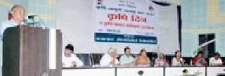 वर्धा : नैसर्गिक परिस्थितीवर मात करून आधुनिक पद्धतीने शेतकऱ्यांनी शेती करावी. शासनाच्या विविध लोकोपयोगी योजनांचा लाभ घ्या, असा सल्ला पुण्याचे कृषी आयुक्तालयाचे उपसंचालक रवींद्र ढमाळ यांनी दिला.विकास भवन येथील कृषी दिन व कृषी मित्रांचे प्रशिक्षण कार्यक्रमाच्या उद्घाटनप्रसंगी ते बोलत होते. यावेळी जि.प. कृषी सभापती श्यामलता अग्रवाल, महिला व बालकल्याण सभापती चेतना मानमोडे, जि.प. सदस्य स्मीता ढवळे, जि.प. तथा कृषी समिती सदस्य मनोज चांदूरकर, पं.स. सभापती कुंदा भोयर, शेतीनिष्ठ शेतकरी वसंत पाटील, जिल्हा अधीक्षक कृषी अधिकारी भाऊ बऱ्हाटे, केम प्रकल्पाचे जिल्हा व्यवस्थापक संजय सोनटक्के, आत्माचे प्रकल्प उपसंचालक दीपक पटेल, उपसंचालक जी.आर. कापसे आदी उपस्थित होते.ढमाळ पुढे म्हणाले की, जिल्ह्यात कापूस, सोयाबीन, तूर ही पारंपरिक पिके घेतली जातात; पण सध्याच्या नैसर्गिक परिस्थितीवर मात करण्यासाठी आधुनिक तंत्रज्ञानाने शेती करावी. प्रक्रिया उद्योगावर भर देऊन शेती करावी. जलयुक्त शिवार अभियानाच्या माध्यमातूनही पाण्याचे सुक्ष्म नियोजन करावे. शेतकऱ्यांसाठी महत्त्वाच्या असलेल्या ‘एम-पोर्टल’ या संकेतस्थळावर नाव नोंदणी करावी. पीक वाढीस मदत करणाऱ्या तंत्रज्ञानावर भर देऊन शेतकऱ्यांनी शेती करणे गरजेचे आहे, असे सांगितले. चांदूरकर यांनी विविध कृषी विषयक समस्यांवर भाष्य करतानाच उत्पन्नामध्ये वाढ करताना शेतकऱ्यांची कशी दमछाक होते ते सांगितले. यामुळे शेतकऱ्यांनीही प्रयत्न न सोडता उत्पन्नावर आधारित उत्पादन घेण्याचे आवाहन केले. स्मीता ढवळे, चेतना मानमोडे यांनीही शेतकऱ्यांनी शासनाच्या विविध योजनांचा लाभ घेऊन स्वत:चे जीवनमान उंचावण्यावर भर द्यावा, असे सांगितले. भाऊ बऱ्हाटे यांनी लवकरच कृषी विभागामार्फत शासकीय योजनांबाबत माहिती पुस्तिका काढण्यात येणार आहे. या पुस्तिकेत शासनाच्या सर्व योजनांची माहिती राहणार आहे. ही माहिती शेतकऱ्यांसाठी अत्यंत उपयुक्त ठरणारी असेल. जिल्ह्यातील शेतकऱ्यांनी पारंपरिक शेतीवर अवलंबून न राहता आधुनिक पद्धतीने शेती करावी, असे सांगितले.प्रारंभी माजी मुख्यमंत्री यशवंत चव्हाण, हरितक्रांतीचे प्रणेते तथा माजी मुख्यमंत्री वसंतराव नाईक यांच्या प्रतिमेचे पूजन करून दीपप्रज्वलनाने मान्यवरांच्या हस्ते जागृती सप्ताहाचे उद्घाटन करण्यात आले. वसंतराव नाईक यांच्या जयंतीनिमित्त आयोजित कृषी दिन व कृषी जागृती सप्ताहाला जिल्हाभरातून शेतकरी मोठ्या संख्येने उपस्थित झाले होते. कार्यक्रमाच्या दुसऱ्या सत्रात डॉ. नेमाडे आणि पेशकर यांनी शेतकऱ्यांना शेतीवरील तांत्रिक मार्गदर्शन केले. त्यांच्या शंकांचेही यावेळी निरसन करण्यात आले. कार्यक्रमाचे स