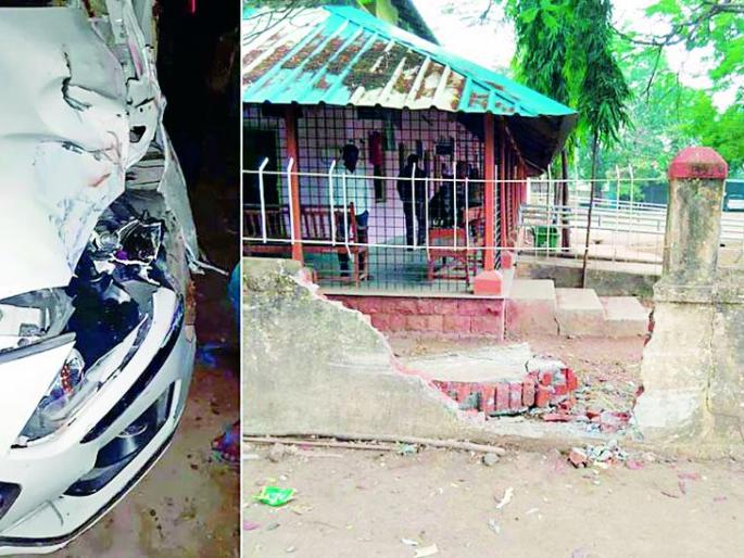 भरधाव कार चढली न्यायालयाच्या भिंतीवर