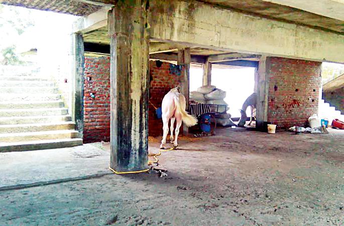 पालिकेच्या अर्धवट सभागृहात घोड्यांचा तबेला