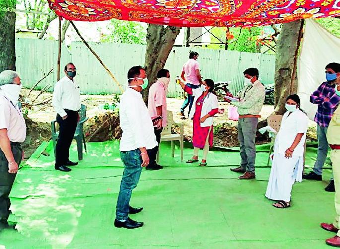 वर्धा जिल्ह्यातील १७ बॉडर सील पॉर्इंटवरील पोलीस अधिकाऱ्यांसह कर्मचारी तसेच गृहरक्षक दलाच्या जवानांची आरोग्य तपासणी करताना आरोग्य विभागाचे अधिकारी व कर्मचारी.