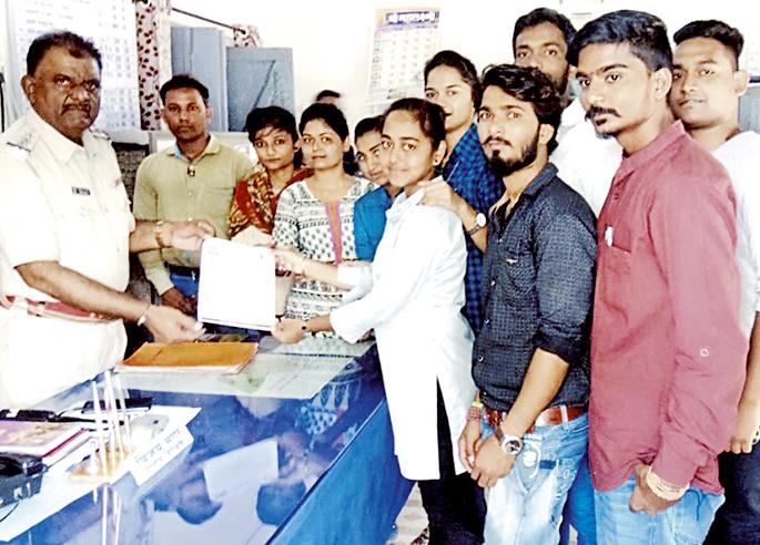 पोलीस निरीक्षकांना निवेदन देताना जिल्हाध्यक्ष निरज बुटे, अभियान समितीचे वैष्णवी डाफ, शंतनू भोयर, अजिंक्य मकेश्वर, दुष्यंत ठाकरे, धिरज चव्हाण, शिवम भोयर, हेरॉल्ड डिक्रुझ, लोकेश साहू, निखील ठाकरे, अमोल थोटे, आशू चेर, पलक रोहनकर, कृतिका भोयर, निशा कोटंबकर, रक्षंदा बानोकर यासह पदाधिकारी उपस्थित होते.