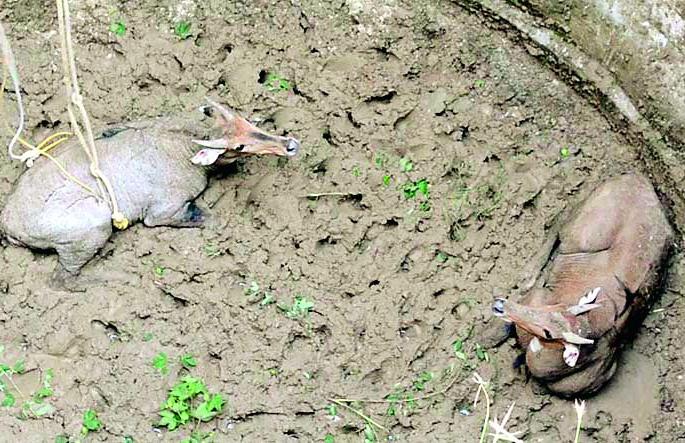 दोन्ही नीलगाय या नर होत्या. शिवाय धारदार शिंग असल्याने विहिरीतून बाहेर काढणे कठीण होते. या नीलगायीचे वजन २०० किलो असल्याने जेसीबीला पाचारण करण्यात आले. जेसीबीच्या सहाय्याने पीपल फॉर अॅनिमल्सच्या कार्यकर्त्यांनी विहिरीत उतरुन सहा तासांच्या प्रयत्नानंतर निलगाईला सुखरूप बाहेर काढले.