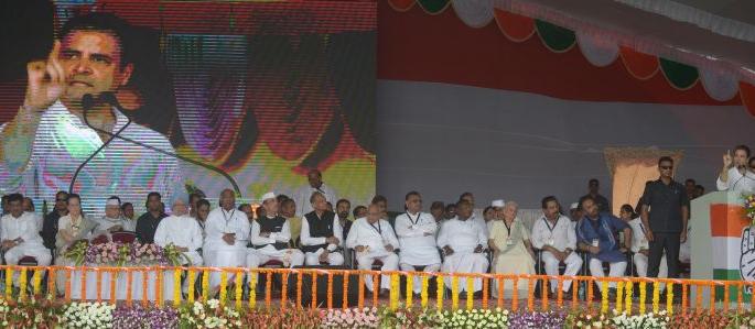 कमलेश वानखेडेलोकमत न्यूज नेटवर्कवर्धा : द्वेषाचे राजकारण करून पंतप्रधान नरेंद्र मोदी देश तोडण्याचे काम करीत आहेत. त्यांनी देशाला दिलेले एकही आश्वासन पूर्ण केलेले नाही. मोदी देशाचे चौकीदार नाहीत तर ‘राफेल’मध्ये भागीदार आहेत. जनतेचा पैसा लुटून निवडक उद्योगपतींच्या खिशात टाकत आहेत, असा थेट आरोप करीत अखिल भारतीय काँग्रेस समितीचे अध्यक्ष खा. राहुल गांधी यांनी पंतप्रधान नरेंद्र मोदी यांना लक्ष्य केले. देशाने मोदींना ‘ट्राय’ केले, ते ‘फेल’ ठरले. त्यांची गाडी ‘पंक्चर’ झाली. आता पुढे चालणार नाही, असे टीकास्त्र सोडत आता एकदा काँग्रेसवर विश्वास करून पहा, असे आवाहनही त्यांनी उपस्थित जनसमुदायाला केले.राहुल गांधी यांच्यासह ‘युपीए’च्या अध्यक्ष सोनिया गांधी, माजी पंतप्रधान मनमोहनसिंग व काँग्रेस नेत्यांनी मंगळवारी सकाळी सेवाग्राम येथील बापू कुटीला भेट देऊन दर्शन घेतले. यानंतर येथील महादेव भवनात काँग्रेस कार्यसमितीची बैठक झाली. बैठकीनंतर राहुल गांधी यांची वर्धा येथे पदयात्रा होऊन सर्कल ग्राऊंड मैदानावर संकल्प रॅली झाली. या जाहीर सभेत राफेल विमान खरेदीच्या मुद्यावरून राहुल गांधी यांनी पुन्हा एकदा पंतप्रधान नरेंद्र मोदी यांच्यावर जोरदार हल्ला चढविला. राहुल गांधी म्हणाले, पंतप्रधान मोदी यांनी विमान निर्मितीचा कुठलाही अनुभव नसताना अनिल अंबानी यांच्या कंपनीला थेट ३० हजार कोटींचे कंत्राट दिले. ४५ हजार कोटींचे कर्ज असलेल्या अंबानींवर मोदींनी कृपा केली. मोदी अंबानीला सोबत फ्रान्सला घेऊन गेले. ५२६ कोटींना मिळणारे एक राफेल विमान तब्बल १६०० कोटींमध्ये करण्याचा प्रताप त्यांनी केला. स्वत:ला देशाचा चौकीदार सांगणारे मोदी हे चौकीदार नसून भागीदार आहेत, असा आरोप त्यांनी केला.गांधी जोडतात, मोदी तोडतात आज मोदी गांधींच्या पुतळ्यासमोर उभे राहून हात जोडतात. मात्र, गांधींनी दिलेली शिकवण त्यांना मान्य नाही. गांधी जोडतात तर मोदी तोडण्याचे काम करतात. मोदी धर्म, जातीत भांडणे लावतात. क्रोध निर्माण करतात, अशी टीकाही त्यांनी केली.दिग्गज नेत्यांची उपस्थितीसभेला लोकसभेतील नेते महाराष्ट्र प्रभारी खा. मल्लिकार्जून खरगे, राज्यसभेतील नेते खा. गुलामनबी आझाद, खा. अहमद पटेल, माजी अर्थमंत्री पी. चिदंबरम, संघटन महासचिव अशोक गहलोत, पुड्डुचेरीचे मुख्यमंत्री नारायण सामी, वीरप्पा मोईली, मोतीलाल व्होरा, ए.के. अॅन्टोनी, आनंद शर्मा, सुशीलकुमार शिंदे, जनार्दन द्विवेदी, अंबिका सोनी, मुकुल वासनिक, अविनाश पांडे, हरीश रावत, पी.एल. पुनिया, ज्योतिरादित्य शिंदे, मोहसिना किदवाई, प्रदेशाध्यक्ष खा. अशोक चव्हाण, विलास मुत्तेमवार, खा. राजीव सातव,बाला बच्चन, संजय निरुपम, विधानसभेतील विरोधी पक्षनेते र
