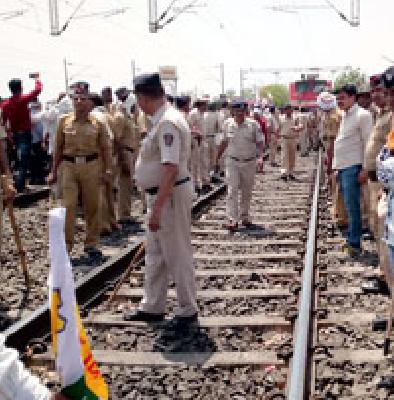 वेगळ्या विदर्भासाठी आंदोलन : अनुचित घटना घडू नये म्हणून तगडा बंदोबस्तवर्धा : वेगळ्या विदर्भाच्या मागणीकरिता गुरुवारी विदर्भ राज्य आंदोलन समितीच्यावतीने सेवाग्राम रेल्वे स्थानकावर रेल्वे रोको आंदोलन झाले. आंदोलनकर्ते नेमके कुठे रेल्वे रोको करतील, याबाबत पोलीस अनभिज्ञ असल्याने सेवाग्राम रेल्वे स्थानकापासून तर आंंदोलनकर्ते जमा झालेल्या ठिकाणापर्यंत पोलीसच पोलीस दिसत होते. मात्र मोर्चा स्थळापासूनच शांततेत निघाला आणि सेवाग्राम रेल्वे स्थानकावर पोहचला. यानंतर आंदोलनही शांततेत पार पडताच पोलिसांना खऱ्या अर्थाने सुटकेचा श्वास घेतला. दरम्यान, पोलिसांचा बंदोबस्त अभूतपूर्व असाच होता. पोलिसांच्या या चोख बंदोबस्तामुळे आंदोलन होणार अथवा नाही, अशी स्थिती असताना आंदोलकांनी त्यांचा रेल्वे स्थानकावर येण्याचा मार्ग बदलविल्याने पोलिसांची चांगलीच तारांबळ उडाली. बुधवारी रात्रीपासूनच आंदोलनेकर्ते वर्धेत दाखल होणे सुरू होते. यामुळे नेमके किती आंदोलक येतील याचा अंदाज पोलिसांना आला, यानुसार पोलिसांनी तगडा बंदोबस्त ठेवला. सेवाग्राम रेल्वे स्थानकाला सकाळपासूनच पोलीस छावणीचे स्वरुप आले होते. या परिसरात ठिकठिकाणी कोणताही अनुचित प्रकार घडू नये याची काळजी म्हणून पोलिसांच्या गाड्या सज्ज करण्यात आल्या होत्या. पोलीस कर्मचारी वेळोवेळी वरिष्ठांना आंदोलकांबाबत अपडेट देत होते. दुपारची १२ वाजताची वेळ. सूर्य डोक्यावर असून आग ओकत होता. उन्हातान्हाची तमा न बाळगता १२.३० वाजता मोर्चाच्या नियोजनस्थळापासून मोर्चाला प्रारंभ झाला. आंदोलकांची संख्या पाहुन अनेकांनी तोंडात बोटे घातली. मोर्चा निघताच कोणतीहीची अनुचित घटना घडून नयू म्हणून पोलीस पथक मोर्चाकडे वळली. सुमारे १५ मिनिटात मोर्चा सेवाग्राम रेल्वे स्थानकावर धडकला. पोलिसांची संख्या बघता रेल्वे रोको होणार वा नाही, याची उत्सुकता ताणलेली होती. मात्र आंदोलनकर्ते आणि पोलिसांनी संयम बाळगल्याने आणि आंदोलन हा लोकशाहीचा अधिकार असल्याची बाब पुढे आल्याने अखेर आंदोलनकर्त्यांनी रेल्वे रोखली. आंदोलनकर्त्यांनी रेल्वे इंजिनावर चढून स्वतंत्र विदर्भ राज्याच्या मागणीचे फलक झळकावले. मोर्चात महिलांची संख्याही लक्षणीय होती. दरम्यान, रेल्वे स्थानकावर चोहोबाजुने आंदोलनकर्ते आणि खाकी वर्दीतील पोलिसच दिसत होते. खबरदारी म्हणून राज्य पोलीस आणि रेल्वे पोलिसांनी संयुक्त बंदोबस्त ठेवला होता. रस्त्यावर ठिकठिकाणी बॅरीगेट्स लावण्यात आले होते. रेल्वे स्थानकावर प्रवेश घेण्याकरिता असलेल्या दारावर चोख बंदोबस्त होता. परिस्थिती हाताळण्याकरिता राज्य पोलीस दलाचे जिल्हा पोलीस अधीक्षक अंकीत गोयल स्वत: आपल्या कर्मचाऱ्यांसह पर