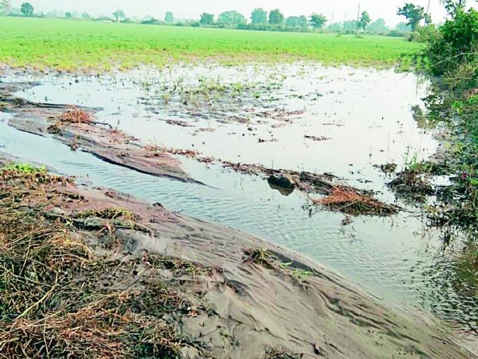 वितरिकेच्या पाण्यामुळे शेताला आले तळ्याचे स्वरूप