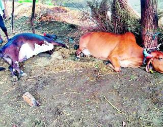 वीज पडून दोन दुधाळू जनावरे दगावली