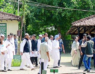 वर्धा : सेवाग्राम आश्रमात सोनिया, राहुल गांधींनी धुतले स्वत:चे ताट