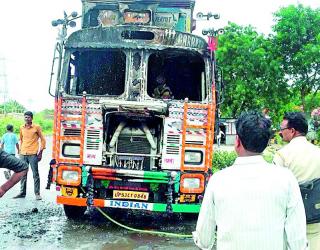 उभ्या ट्रकला लागली आग