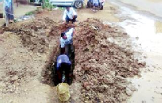 पाईपलाइन दुरूस्त करून खड्डा बुजविला
