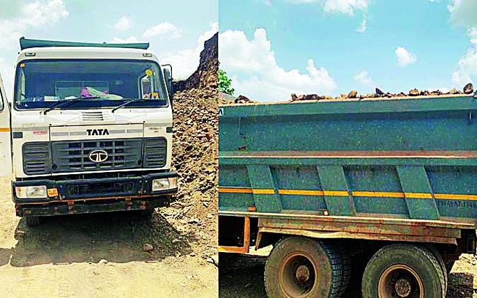 पाच वाहनांसह पोकलॅँण्ड जप्त