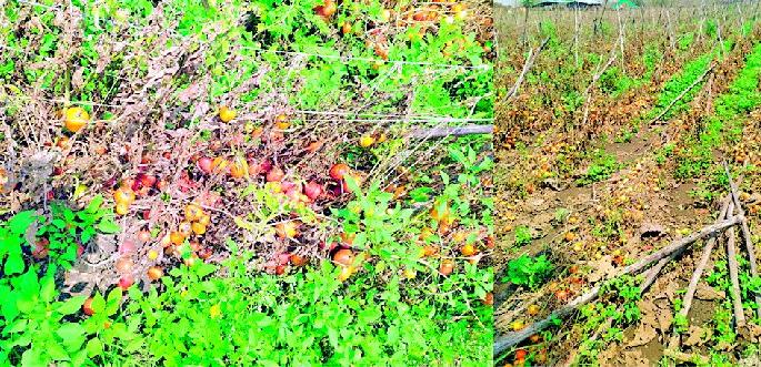 ठळक मुद्देतालुक्यातील शेतकरी संकटात, टमाटर, भाजीपाल्याच्या बागा उद्ध्वस्त