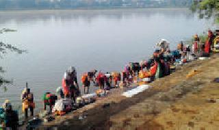 तयारी दिवाळीची : दिवाळी म्हटले की खरेदीसोबतच घरातील साफसफाई केली जाते. ग्रामीण भागात कपडे, चादरी धुण्यासाठी महिलांना असे घाटावर जावे लागते. बोंडगाव (देवी) येथील सार्वजनिक पाठवड्यावरील हे बोलके छायाचित्र.