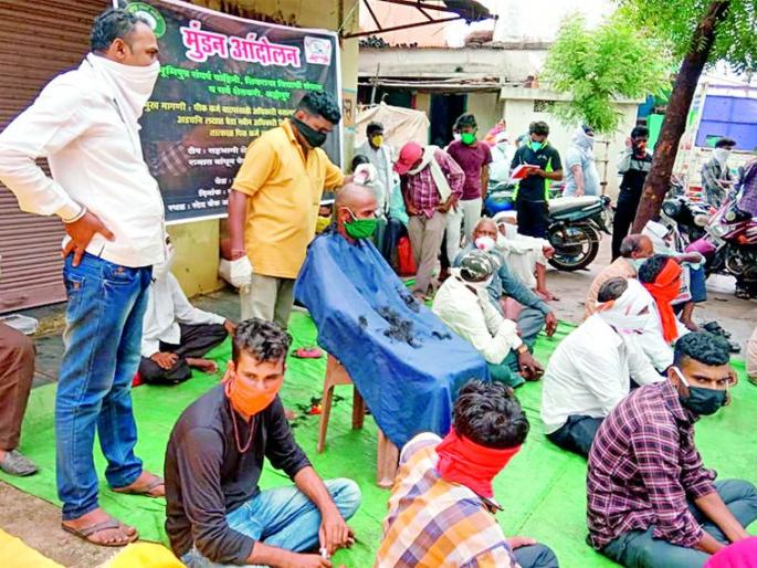पीककर्ज न देणाऱ्या बँकेसमोर केले मुंडण