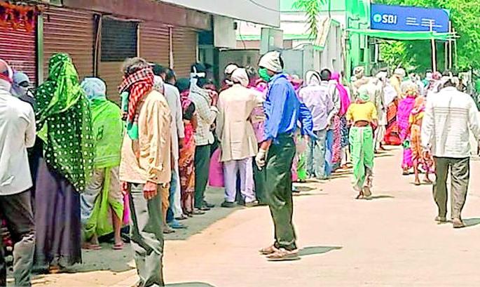 बँकेत खातेधारकाकडून सोशल डिस्टन्सिंगला ठेंगा