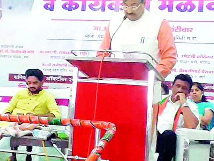 लोकमत न्यूज नेटवर्कपुलगाव : मजबूत संघटन ही पक्षाची ताकद असून, संघटन मजबुतीसाठी भाजपच्या प्रत्येक पदाधिकाऱ्यासह कार्यकर्त्याने प्रयत्न करावेत. आपण जनतेमध्ये ईश्वराचा अंश बघतो, असे प्रतिपादन माजी अर्थमंत्री आ. सुधीर मुनगंटीवार यांनी केले. पुलगाव येथे विकासकामांचा लोकार्पण सोहळा व भाजप कार्यकर्ता मेळाव्यात ते बोलत होते. कार्यक्रमाच्या अध्यक्षस्थानी भाजपचे जिल्हाध्यक्ष डॉ. शिरीष गोडे होते. व्यासपीठावर खा. रामदास तडस, आ. रामदास आंबटकर, प्रदेश सचिव राजेश बकाने, माजी खासदार सुरेश वाघमारे, ओबीसी मोर्चाचे प्रदेशाध्यक्ष योगेश टिळेकर, ओबीसी मोर्चा प्रदेश सरचिटणीस संजय गाते, पुलगावच्या नगराध्यक्षा शितल गाते, जि. प. उपाध्यक्ष वैशाली येरावार, जि. प. सदस्य प्रवीण सावरकर, शहर अध्यक्ष नितीन बडगे, ओबीसी मोर्चाचे राजेंद्र डांगे, रवींद्र चव्हाण आदींची उपस्थिती होती. मुनगंटीवार पुढे म्हणाले, भाजपची सत्ता आल्याशिवाय अतिरिक्त तहसील होणार नाही. या मतदारसंघात काँग्रेसचे विसर्जन करून महात्मा गांधींचे स्वप्न पूर्ण करावे. शेतकऱ्यांना पंचनामे सांगणारे दळभद्री हे सरकार असून, संघर्ष करा. राज्यात भाजपचे सरकार आल्याशिवाय शेतकऱ्यांचे तसेच महात्मा गांधींचे स्वप्नही पूर्ण होणार नाही, असेही यावेळी त्यांनी स्पष्ट केले. खा. तडस यांनी, अल्पमतातील नगर परिषद चालवणे कठीण आहे; परंतु संजय गाते यांनी किमया करून दाखविल्याचे सांगितले. भाजप-सेना युतीने दिलेला निधी महाविकास आघाडी सरकारने परत नेला. तरीही ७० टक्के वचननाम्यातील कामे नगर परिषद पुलगावने पूर्ण केली, असे संजय गाते यांनी सांगितले. मराठा, ओबीसी समाजाचा विश्वासघात करणारे महाविकास आघाडी सरकार आहे. या सरकारला धडा शिकवण्याची आज गरज आहे. म्हणून विदर्भ मेळाव्यात जास्तीत जास्त ओबीसी समाजबांधवांनी सहभागी व्हावे, असे आवाहन ओबीसी प्रदेश मोर्चाचे अध्यक्ष योगेश टिळेकर यांनी केले. प्रास्ताविक नितीन बडगे यांनी केले. सूत्रसंचालन आकाश दुबे यांनी केले. आभार गजेंद्र गालपेल्लीवार यांनी मानले. कार्यक्रमाला नितीन बडगे, मंगेश झाडे, राजू बत्रा, मानसिंग झांझोटे, भारत नागपाल, शिल्पा ठाकूर, संदीप बोरकुटे, मयूर निनावे, शकील खान, संगीता शहा, चंद्रकांत शहाकार, भरत नागपाल आदींची उपस्थिती होती.
