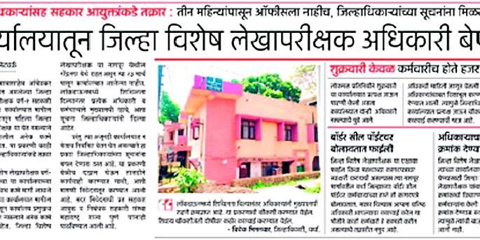 वर्धा शहरातील जिल्हा विशेष लेखापरीक्षक वर्ग-१ या कार्यालयातील जिल्हा विशेष लेखापरीक्षकच तीन महिन्यांपासून कार्यालयात न येत वेतन घेत असल्याची बाब काही नागरिकांनी जिल्हाधिकाऱ्यांना सादर केलेल्या तक्रारीतून पुढे आली आहे. ही बाब जिल्हाधिकाऱ्यांच्या आदेशाला बगल देणारी ठरत असल्याने आणि गंभीर असल्याने लोकमतनेही त्याची दखल घेत २७ जून रोजी ‘कार्यालयातून जिल्हा विशेष लेखापरीक्षक बेपत्ता’ या मथळ्याखाली वृत्त प्रकाशित केले.