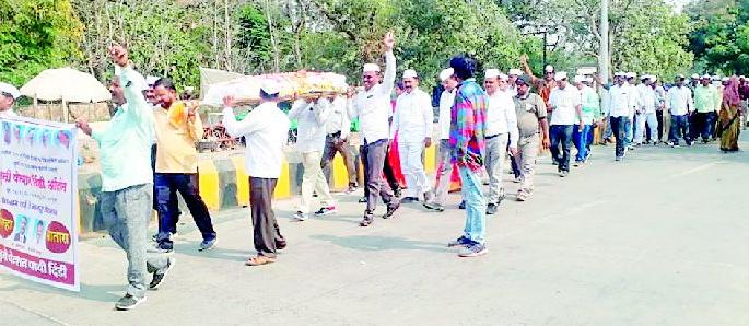जुन्या पेन्शनकरिता प्रतिकात्मक अंत्ययात्रा