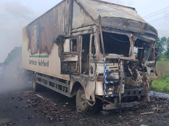 वर्धा : भरधाव कंटेनरने रस्त्याच्या बाजूला उभ्या असलेल्या ट्रकला धडक दिली. या अपघातात कंटेनरने पेट घेतल्याने त्यात वाहून नेत असलेले लाखो रुपयांचे साहित्य जळून राख झाले, तर दोघे जण गंभीर जखमी झाले. ही घटना शुक्रवार, १२ रोजी पहाटेच्या सुमारास समुद्रपूर तालुक्यातील जाम परिसरात घडली. चालक अलताफ अली, रा. इलाहाबाद, वाहक दीपक कुमारपाल अशी जखमींची नावे आहे.