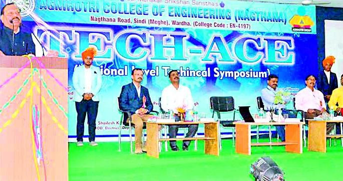 अग्निहोत्री अभियांत्रिकी महाविद्यालय, नागठाणा रोड, सिंदी (मेघे) येथे राज्यस्तरीय एक दिवसीय तंत्र परिषदेचे आयोजन करण्यात आले होते. परिषदेच्या उद्घाटनपर कार्यक्रमाला व्यासपीठावर राणीबाई अग्निहोत्री शारीरिक शिक्षण महाविद्यालयाचे प्राचार्य डॉ. एस. नारायण मूर्ती, अग्निहोत्री स्कूल आॅफ टेक्नोलॉजीचे प्राचार्य चंद्रकांत कोठारे, अग्निहोत्री अभियांत्रिकी महाविद्यालयाचे प्राचार्य अभिषेककुमार सिंह, अग्निहोत्री पोलिटेक्निकचे प्रा. प्रमोद वाळके, प्रा. विजय वाढणकर यांची प्रामुख्याने उपस्थिती होती.