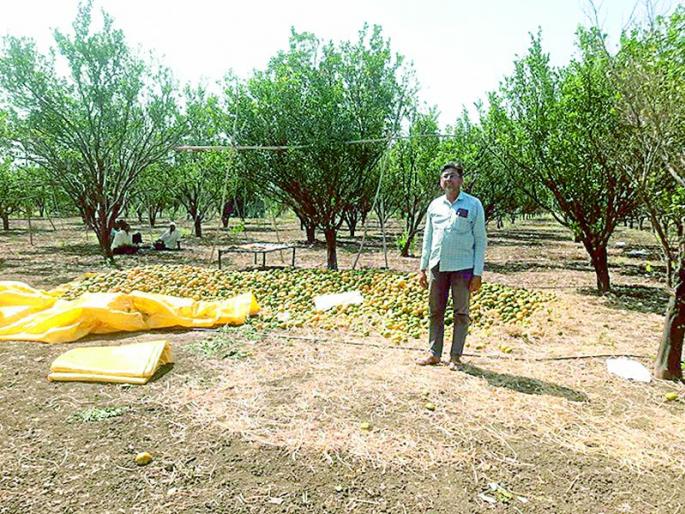लोकमत न्यूज नेटवर्ककारंजा (घाडगे) : तालुक्यातील अनेक शेतकरी संत्रा पिकाचे उत्पादन घेतात. अशाच एका संत्रा उत्पादकाचा तोडणी केलेला पावणेदोन लाखांचा संत्रा चोरट्याने काळोखाचा फायदा घेत मालवाहूच्या साहाय्याने चोरून नेला. ही घटना मध्यरात्री तालुक्यातील खरसखांडा शिवारात घडली असून रविवारी सकाळी उघडकीस आली.खरसखांडा येथील माजी सरपंच विकास नासरे यांनी त्यांच्या शेतातील संत्रा पिकाची तोडणी करून शेतातच संत्र्याचा ढीग करून ठेवला. मध्यरात्रीच्या सुमारास पाच अज्ञात व्यक्तींनी नासरे यांच्या शेतात येत संत्र्याच्या ढिगाशेजारी झोपून असलेल्या मजुरांना धमकाविले. त्यानंतर अज्ञात चोरट्यांपैकी एकाने मालवाहू वाहनाला पाचारण केले.हिंदी आणि मराठी भाषेचा वापर करून संवाद साधणाऱ्या चोरट्यांनी ढीग करून असलेल्या सुमारे पाच टन संत्र्यापैकी तीन टन संत्रा मालवाहूत लादून चोरून नेला. चोरट्यांनी घटनास्थळावरून यशस्वी पळ काढल्यावर घाबरलेल्या मजुरांनी स्वत:ला सावरत नासरे यांचे घर गाठून घडलेल्या घटनेची माहिती दिली. त्यानंतर नासरे यांनी संत्राचोरीची माहिती पोलिसांना दिली. या प्रकरणी तक्रारीवरून कारंजा पोलिसांनी गुन्ह्याची नोंद घेतली असून पुढील तपास कारंजाचे ठाणेदार दारासिंग राजपूत यांच्या मार्गदर्शनात प्रफुल्ल माहूर करीत आहेत.