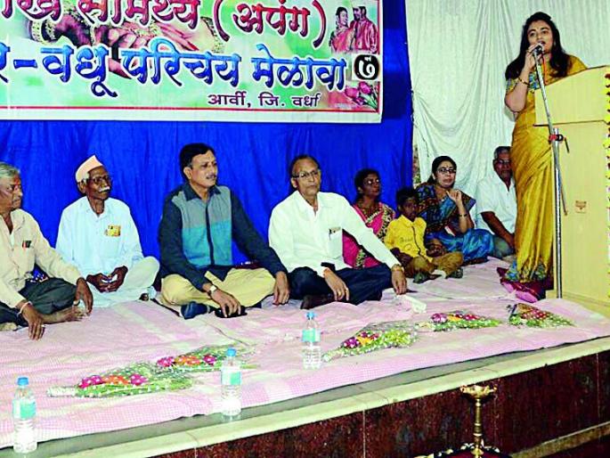 स्थानिक गुरुनानक धर्मशाळा येथे पार पडलेल्या मेळाव्यात विवाह इच्छुक असलेल्या ९० दिव्यांग मुला-मुलींनी आपला परिचय दिला. कार्यक्रमाच्या अध्यक्षस्थानी धर्मशाळेचे सचिव टेकचंद मोटवाणी होते तर प्रमुख अतिथी म्हणून माजी आमदार दादाराव केचे, महाराष्ट्र प्रदेश युवा मोर्चाच्या सचिव प्रिया शिंदे, अनोखे सामर्थ्य दिव्यांग मित्र परिवारचे प्रदेश कार्याध्यक्ष सूर्यप्रकाश भट्टड, आर्वीचे ठाणेदार अशोक चौधरी, गुरुदेव सेवा मंडळाचे ज्येष्ठ स्वयंसेवक दामोधर बांगरे आदींची उपस्थिती होती. कार्यक्रमादरम्यान मेघा आव्हाड हिला तीन चाकी सायकल तर सतीश शुक्ला यांना व्हिल चेअर मान्यवरांच्या हस्ते देण्यात आली. याप्रसंगी दिव्यांग व्यक्ती सोबत सुदृढ व्यक्तीने लग्न केल्याबद्दल संगीता अरुण मानकर यांच्या हस्ते मिनाक्षी पांडे, वर्षा धर्मदत्त बुरे, संगिता कारणकर यांचा सत्कार करण्यात आला. कार्यक्रमाचे प्रास्ताविक अरुण मानकर यांनी केले. संचालन देव्यानी सहारे यांनी केले तर आभार धर्मदत्त बुरे यांनी मानले. उपवर-वधूचा परिचय विलीन पांडे यांनी करुन दिला. यशस्वीतेकरिता सुधाकर भेदे, हरी भरे, धर्मदत्त बुरे, प्रभाकर भेदे, हर्षल पांडे, प्रकाश बिजवे, विनोद त्रिवेदी, भगवती अग्रवाल, विनोद सहारे, सुबोध ठाकरे, प्रकाश सहारे, संजय गोमासे, उपराटे, उमेश बारापात्रे, श्यामराव ठाकरे, खंडाळकर आदींनी सहकार्य केले.