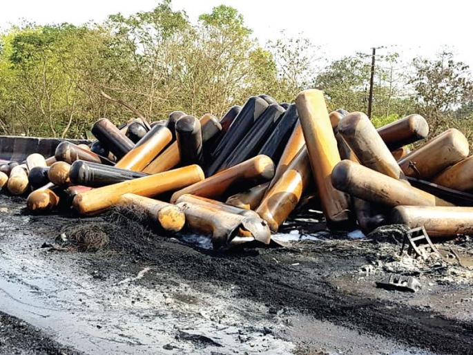 कासा : मुंबई अहमदाबाद महामार्गावर मंगळवारी संध्याकाळी चारच्या सुमारास भरु च (गुजरात) कडून मुंबईकडे गॅस सिलेंडर वाहून नेणाऱ्या ट्रक चालकाचा चारोटी उड्डाणपूलावर गाडीचा ताबा सुटल्याने ट्रकचा अपघात झाला. यामध्ये ट्रक चालकाचा जागीच होरपळून मृत्यु झाला तर रस्त्याच्या बाजूला उभे असणारे ४ प्रवासी यात जखमी झाले होते.या घटनेनंतर या ठिकाणी तब्बल २ ते ३ तास प्रचंड वाहतूक कोंडी झाली होती. टँकरमधे हायड्रोजन गॅसच्या १३३ टाक्या होत्या. त्यापैकी केवळ ३ टाक्यांचाच स्फोट झाल्याने २ किमी अंतरापर्यन्त त्याचा आवाज ऐकू येत होता. ही दुर्घटना काही प्रमाणात कमी झाली. तरी कदाचित आणखी काही टाक्यांचा स्फोट झाला असता तर मोठी जीवित हानी होण्याची भीती होती परंतु एक मात्र नक्की हे सर्व बघुन चारोटी करांच्या जुन्या आठवणींना उजाळा मिळाला.२२ मार्च २०१४ रोजी याच ठिकाणी रसायन टँकर पलटी होऊन स्फोट झाला होता. त्यामध्ये ८ जणांचा बळी गेला होता या मध्ये कैनाड येथील एकाच कुटुंबातील ६ जणांचा मृत्यू झाला होता. तर १४ जण जखमी झाले होते. पाच गाड्या पेटल्या होत्या व अप्सरा हॉटेलचे पूर्णत: जळून गेले होते. या घटनेनंतर सहा वर्षा पूर्वी चारोटी या ठिकाणी पूल उभारण्याची मागणी जोर धरू लागली. मुंबई-अहमदाबाद राष्ट्रीय महामार्गाचा ठेका असणाºया आयआरबी कंपनीने मागणीची अंमलबजावणी करत याठिकाणी पुलाचे काम पूर्ण केले.पुलाच्या उभारणीनंतर या ठिकाणच्या अपघातांना पायबंद न बसता त्यात वाढ झाली आहे. गत महिन्याभरात कार पुलावरून पडली व दोन मोटारसायकल चा अपघात झाला आहे. राष्ट्रीय महामार्गावरील या पुलावर दोन्हीही बाजून चुकीच्या पद्धतीने तीव्र उतार व धोकेदायक वळण दिले आहे. त्यामुळे रस्त्याचा अंदाज न आल्याने या ठिकाणाहून वेगाने जाणारी वाहने उलटतात याच महामार्गाने रोजच्या रोज अनेक ज्वलनशील पदार्थ घेऊन जाणाºया टँकरची संख्या ही लक्षणीय असते. पुलावर दोन्ही बाजूंनी तीव्र उतार असल्याने हे ज्वलनशील पदार्थ घेऊन जाणारे टँकर वेगाने धावत असतात. त्यामुळे या ठिकाणी अपघातांच्या घटनांमध्ये वाढ झाली आहे. वास्तविक पाहता महामार्गावर ज्वलनशील पदार्थ घेऊन जाणाºया टँकरची संख्या लक्षणीय असल्याकारणाने सदर अवजड वाहनांसाठी स्वतंत्र पर्यायी मार्गाची व्यवस्था करणे शक्य असताना देखील आयआरबी प्रशासनाने त्या बाबतीत तशी तरतूद का केली नाही असा प्रश्न चारोटी वासिय नागरिक विचारू लागले आहेत. दरम्यान या बाबत एन एच आय टेक्निकल मॅनेजर दिनेश अग्रवाल यांच्याशी संपर्क साधला असता तो होऊ शकला नाही.महामार्गावर चारोटी उड्डाण पुलावर उतार व चढणीच्या ठिकाणी चुकीच्या पद्धतीने टर्न दिला आहे.तो वाहन चालकाच्या लक्षात येत नाही त्यामुळे अपघात हो