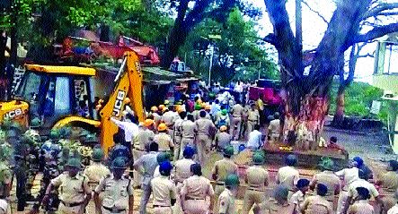 मंगळवारपासून कारवाईसाठी तुंगारेश्वर पर्वतावर दाखल झालेल्या फौजफाट्याने पर्वतावर संचारबंदी लागू केल्याने भाविकांना पर्वतावर जाण्यास मज्जाव करण्यात आला होता. २ हजार पोलिसांचा फौजफाटा वाढवून त्यात बुधवारी आणखी दोन हजारांची कुमक वाढवण्यात आली. बुधवारी आश्रमावर कारवाई होईल.असे असताना गुरुवारी कारवाई ला सुरु वात करून या आश्रमाचा भक्त निवास तोडला. पर्यावरणवादी देबी गोयंका यांनी सर्वोच्च न्यायालयात दाखल केलेल्या याचिकेवर न्यायालयाने तुंगारेश्वर आश्रम जमिनदोस्त करण्याचे आदेश राज्य शासनाला दिले होते. या आदेशानंतर कारवाई सुरू झाली तरीही भजन कीर्तन व चक्र ी उपोषण भक्तांनी चालू ठेवले पण प्रशासनाने ही कारवाई केल्याने भक्तांमध्ये संताप होता. याबाबत लोकप्रतिनिधी मात्र मौन बाळगून होते.