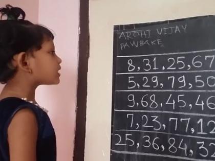 तालुक्यातील जिल्हा परिषद गोवणे मराठी शाळेतील प्रयोगशील शिक्षक विजय पावबाके यांची आरोही ही साडेचार वर्षीय कन्या आहे. सरला आणि विजय पावबाके या पालकांनी तिला काही दिवसपूर्वी शंभरपर्यंतचे इंग्रजी अंक शिकविण्यास सुरुवात केली. कुशाग्र बुद्धिमतेमुळे तिने ते लगेचच अवगत केले. शिवाय दिवसभरात घरातील भिंतीवरील फळ्यावर ती स्वत: अंक लिहायचा व वाचायचा सरावही करू लागली. परंतु असं असताना तिचे लहान वय लक्षात घेता, शंभर पुढील अंक आताच शिकविणार नसल्याचे पालकांनी ठरविले. दरम्यान या काळात नोटांवरील संख्या, गाड्यांचे नंब रप्लेट्स तसेच इमारतीवर लिहलेले अंक ती वाचण्याचा प्रयत्न करीत असल्याचे निरीक्षणही त्यांनी नोंदविले. तर त्यासह टू झीरो 20, थ्री झीरो 30 म्हणताना वन झीरो वनटी का होत नाही असे प्रश्न तिला पडू लागले. त्यानंतर चक्क कॅल्क्युलेटर किंवा कॉलकरिता मोबाईलवर नंबर डायल करतेवेळी दहा अंकी संख्या वाचता याव्यात म्हणून तिने हट्टच धरला. मग मात्र तिला पहिल्या दिवशी शंभर, दुसर्या दिवशी हजार, त्यानंतर लक्ष आणि त्याही पुढे जात चौथ्या दिवशी कोटीपर्यंतचे अंक शिकविण्यात आले. आश्चर्य म्हणजे ते ती अचूक म्हणूही लागल्याने पालक अक्षरशः भारावले.