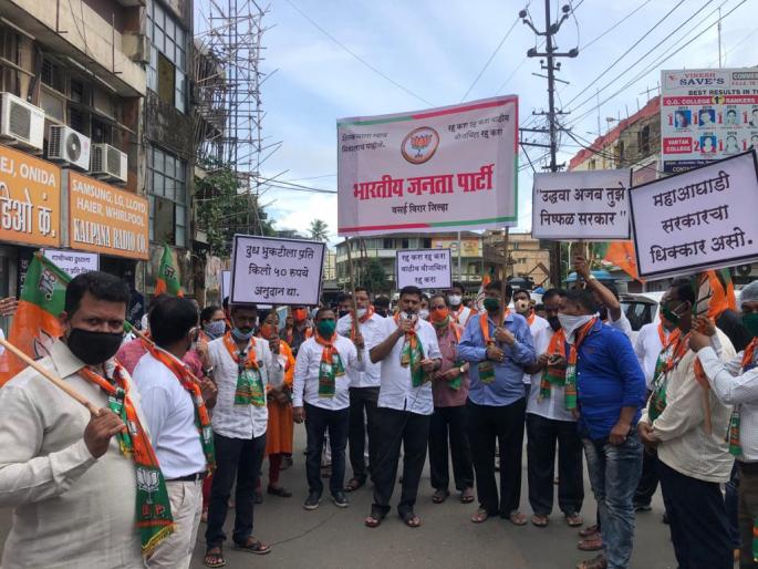 वसई - भाजपा वसई-विरार जिल्ह्यातर्फे वाढीव वीज बिल व दुध दरवाढी विरोधात वसई पारनाका येथे उत्स्फूर्त आंदोलन करण्यात आले. भारतीय जनता पक्षाच्या वतीने शनिवारी राज्यभरात आंदोलन करण्यात आले त्याच पार्श्वभूमीवर हे आंदोलन वसईत देखील पार पडले. दूध उत्पादकांना लिटर मागे 10 रूपये तसेच दूध भुकटीला 50 रुपये सरसकट अनुदान मिळावे,याखेरीज राज्यात महावितरण कोरोना महामारीच्या काळात लोकांकडे मूलभूत गरजा पुरवण्यासाठी पैसे नसताना राज्य सरकारकडून दिलेली वाढीव वीजबिल देयके याच्या विरोधात देखील वसई-विरार जिल्हाध्यक्ष राजन नाईक यांच्या नेतृत्वाखाली हे आंदोलन करण्यात आले. दरम्यान जिल्हा महासचिव राजू म्हात्रे, जिल्ह्याचे उपाध्यक्ष श्याम पाटकर यांनी उपस्थितांना संबोधित केले.