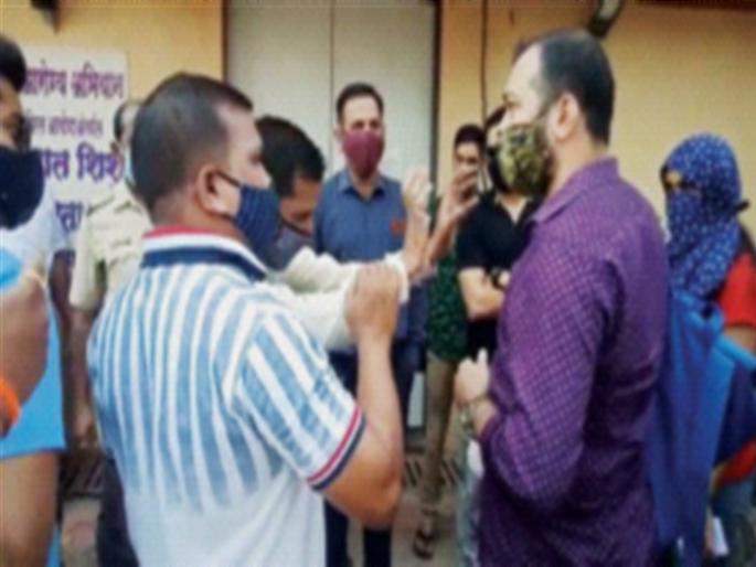जव्हारच्या लसीकरण केंद्रात रविवार दि. २ मे रोजी १३०० लसींचा डोस पुरविण्यात आला आहे. सेल्फ ऑनलाईन रजिस्ट्रेशनमुळे कोणीही कुठलेही केंद्र निवडू शकतो, असे पर्याय देण्यात आले आहेत. त्यामुळे सोमवार सकाळपासून सेल्फ ऑनलाईन नोंदणी करणारे मुलुंड, अंधेरी, ठाणे, वसई, विरार आदी भागातून जवळपास १५० लोक लसीकरण करण्यासाठी थेट जव्हारला आले होते. त्यामुळे स्थानिक आणि बाहेरून आलेल्या नागरिकांत वाद निर्माण झाला. यावेळी स्थानिक पोलिसांना सुद्धा पाचारण करण्यात आले. यावेळी तहसीलदार संतोष शिंदे यांनासुद्धा बोलविण्यात आले होते.वाद वाढून काही वेळातच भांडणाचे स्वरूप निर्माण झाले. मात्र, पोलिसांनी तातडीने गोंधळ शमविला. यावेळी शिवसेनेचे माजी नगराध्यक्ष व शिष्टमंडळ यांची वैद्यकीय अधीक्षक डॉ. मराड यांच्या दालनात बैठक झाली. यावेळी जिल्हा लसीकरण अधिकारी डॉ. मिलिंद चव्हाण यांच्याशी संपर्क साधला त्यांनी जिल्हाधिकारी यांच्याशी संपर्क साधून वस्तुस्थिती सांगितली. जिल्हाधिकारी यांनी एका दिवसासाठीचे लसीकरण बंद करण्याचे आदेश दिले.