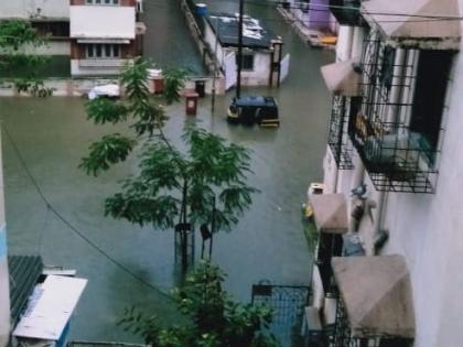 अरे संसार संसार... पावसामुळे पीडित कुटूंब इमारतीच्या टेरेसवर
