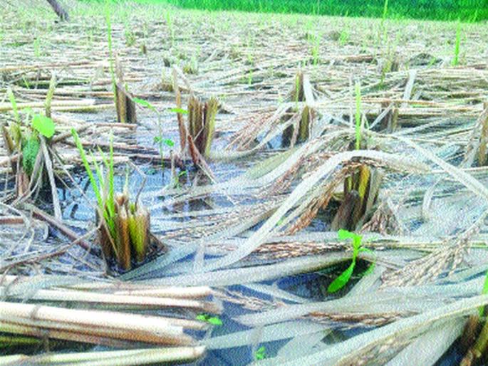 वाडा : अनेक ठिकाणी हलवार जातीची भातपिके तयार झाल्याने शेतकºयांनी त्याची कापणी केली होती. त्यातील दाण्यांना आता मोड येऊ लागले असल्याने ते पूर्णपणे खराब झाले आहे. तसेच अनेक ठिकाणी या पावसाने भातपिके आडवी केली आहेत तर अनेक ठिकाणी ती पाण्याखाली गेल्याने भाताचे उत्पन्न ४० ते ५० टक्के कमी होणार आहे.