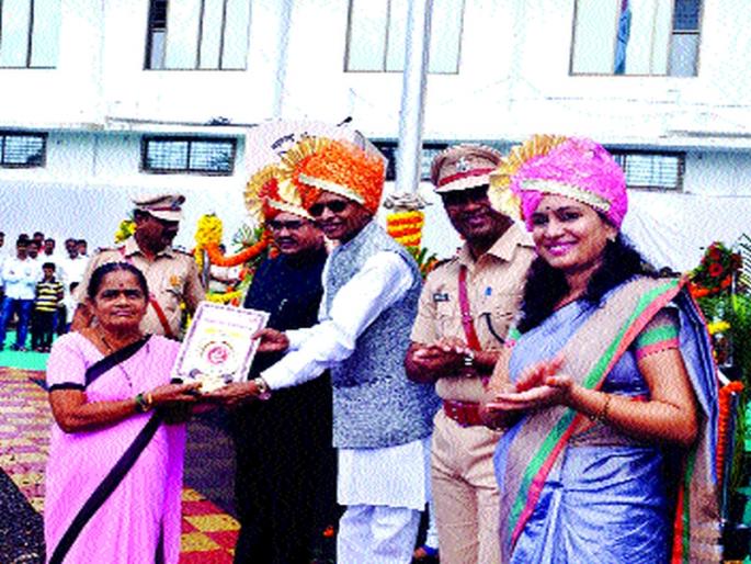 ध्वजारोहण कार्यक्रमादरम्यान विविध क्षेत्रात उल्लेखिनय कामिगरी करणाºया पोलिस अधिकाºयाचा पालकमंत्र्यांच्या हस्ते गौरव करण्यात आला. उत्कृष्ट काम करणाºया अंगणवाडी सेविका, मदतनिस यांचाही पालकमंत्रयाच्या हस्ते प्रशिस्तपत्रक देवून गौरविण्यात आले.