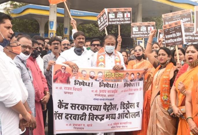भाईंदरच्या जुन्या पेट्रोल पंप बाहेर शिवसेनेच्यावतीने केंद्रातील भाजपा सरकारचा घोषणा देत निषेध केला . जिल्हाप्रमुख प्रभाकर म्हात्रे, महिला जिल्हा संघटक स्नेहल सावंत , उपजिल्हाप्रमुख तथा नगरसेवक राजू भोईर, सह पदाधिकारी सुप्रिया घोसाळकर, वादळी परळकर, श्रेया साळवी, शहर प्रमुख लक्ष्मण जंगम, विकास पाटील, जयराम मेसे, पप्पू भिसे, सलमान हाश्मी, सॅबी फर्नांडिस आदी आंदोलनास उपस्थित होते.