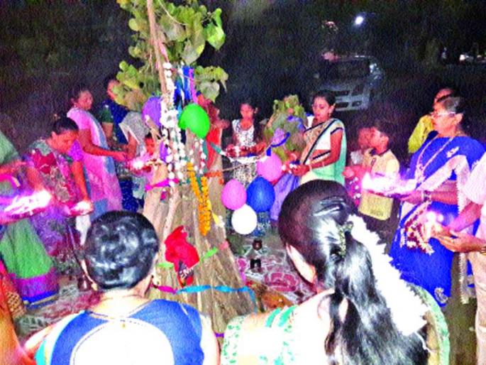 - राहुल वाडेकरविक्रमगड : तालुक्यातील अनेक गावात आजही ‘एक गाव एक होळी’ची परंपरा कायम ठेवली आहे. ग्रामीण खेडया-पाडयात, शिळ, आपटी, आलोंडा, तलवाडा, डोल्हारी, सारशी, ओंदे, दादडे या भागात आजही पारंपारिक पध्दतीनेच सण साजरे करण्याची पंरपरा आहे. याउलट शहरी भागात गल्ली-गल्लीत प्रत्येक सोसायटी, नगरात छोटया मोठया होळया पेटवुन नंतर धुळवडीचे रंग उधळले जातात. मात्र ग्रामीण भागात आधुनिक युगाामध्येही एक गाव एक होळी अशी परंपरा आजही सुरु आहे़पहिले तिन दिवस छोटया होळया व मंगळवारी मुख्य होळी पेटण्याच्या आदल्या दिवशीम्हणजेच चौथा दिवशी चोरटी होळी आणि शेवटच्या म्हणजेच २० मार्चला पाचव्या दिवशी मोठी होळी असा पाच दिवस होळीचा सण साजरा केला जातो़या पाच दिवसांत लहान मुले वाजवत असलेल्या डफऱ्यांचा (डफली) आवाज आजही शिमगा आल्याची ग्वाही देत आहे़चोरटी होळीसाठी तरुण गावातुनच लाकडे चोरुन आणतात़ पाचव्या दिवशी सर्व ग्रामस्थांच्या सहभागाने मोठी होळी रचली जाते. या होळीची पारंपारिक पध्दतीने पुजा केली जाते़ गावातील नवविवाहीत जोडपी या होळीभोवती पाच फेऱ्या मारण्याची पध्दत आहे. त्यानंतर होळी पेटविली जाते़होळीत भाजलेल्या नारळांचा प्रसाद घेण्यासाठी सर्वाचिच झुंबड उडत असते़ साखरेच्या पाकापासुन तयार केलेले गाठीहार लहान मुले होळीच्या दिवशी गळयात घालून मिरवतात. दरवर्शी ज्या ठिकाणी होळी पेटवली जाते त्या जागेला होळीची माळ असे म्हणतात़ याच माळावर पाच दिवस विविधखेळ, गरबानृत्य, मनोरंजनात्मक कार्यक्रम, तर ग्रामीण खेडया पाडयावर तारपा नृत्य, ढोलनाच, लेझीम ंव सामुहिक गरबानृत्य असे विविध कार्यक्रम रात्रभर खेळले जातात़होळीच्या दुसºया दिवशी म्हणजे धुलीवंदनाच्या दिवशी घरोघरी पुरणपोळया केल्या जातात़ धुलीवंदनाला मनसोक्त धुळवड खेळली जाते तर, रंगपंचमीला गावाकडे झाडा-फुलांपासुन तयार केलेले नैसर्गीक रंगाचा आवर्जुन वापर केला जातो़ सध्या बाजार पेठेमध्ये अनेक रंग मिळत असले तरी ग्राहक नैसर्गिक रंगाची मागणी करीन आहेत.पूजेची आगळी परंपरा अन् कोंबडीचे पिलूहोळीच्या दिवशी भेंडीचे झाड (फांदी) अगर बांबुच्या फांदया होळीमाता म्हणुन आणुन त्याची पुजा केली जाते. पुजेला तांदळाच्या नागलीच्या व कुरडई पापडया, पुरणपोळी घरी बनवलेल्या वस्तुंचा नैवैद्य दाखविला जातो़बांबु किंवा भेंडींच्या फांदीला टोकाला खेड्यावर अगर रितीप्रमाणे जिवंत कोंबडीचे पिल्लु बांधले जाते ही प्रथा आजही आबाधीत आहे. त्याचप्रमाणे नवीन लग्न झालेले आपल्या पत्नीला खांदयावर उचलून होळी मातेला प्रदक्षिणा घालण्याची प्रथा असून त्याची आजही अंमलबजावणी होत आहे़