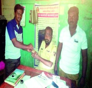मंगरुळपीर, दि. २८- बसच्या प्रवासादरम्यान ७५ हजार रुपयांच्या सोन्याच्या दागिन्याची सापडलेली पिशवी एका प्रवाशाने परत करून माणुसकीचा परिचय दिला. हा प्रकार २८ ऑक्टोबर रोजी अनसिंग ते मंगरुळपीर या बसमध्ये घडला.शुक्रवारी ११ वाजता एम.एच 0७ सी - ९४८६ क्रमांकाच्या अनसिंग ते मंगरूळपीर या बसमध्ये एका प्रवाशाची जवळपास ७५ हजार रुपये किंमतीच्या सोन्याच्या दागिन्याची पिशवी आढळून आली. सदर पिशवी निदर्शनात पडताच, एका प्रवाशाने आगराचे वाहक विकास डुबुले यांना दिली. डुबुले यांनी सदर सोने बस आगारात सहायक वाहतूक निरीक्षक सुरेश सोनोने यांच्याकडे जमा केले आहे.