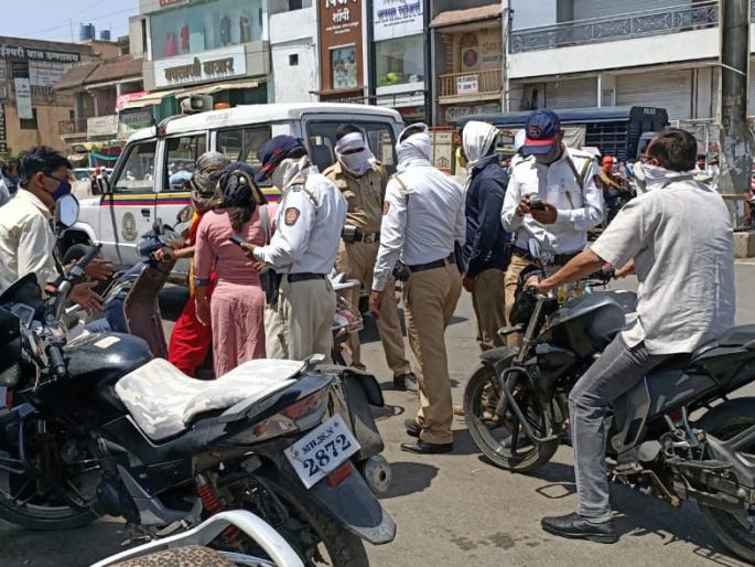 लोकमत न्यूज नेटवर्कवाशिम : कोरोनाच्या पृष्ठभूमिवर मोटारसायकलवर एक तर चारचाकी वाहनामधून चालक व दोन जण असा प्रवास करण्याच्या शासनाच्या सूचना असताना चक्क पोलीसांसमोरुन दुचाकी व चारचाकी वाहनातून यापेक्षा जास्त नागरिक फिरताना दिसून येत आहेत. याबाबत पोलीस कर्मचारीचं अनभिज्ञ असून त्यांना वरिष्ठ स्तरावरुन गाईड लाईन देण्यात आली नसल्यासंदर्भात लोकमतने ६ मे रोजी वृत्त प्रकाशित केले होते. या वृत्ताची दखल घेत अशा वाहनांसह , वाहनावर नंबर नसणे, नियमांचे उल्लंघन करणाºया वाहनांवर कारवाई करण्यात आली. शहरातील पाटणी चौकामध्ये पोलीस कर्मचाºयांनी वाहतूक नियमांचे उल्लंघन करणाºयांवर मोठया प्रमाणात कारवाई करण्यात आली. सकाळी ११ वाजेपर्यंत ५० च्यावर कारवाई करण्यात आली होती.
