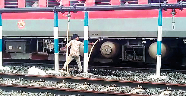 विशेष म्हणजे या कामाकरिता अकोला येथून कर्मचारी येत असल्याची माहिती आहे. शनिवारी अमानवाडी रेल्वे स्टेशनवर गाडी नंबर १२७१९ जयपूर- अजमेर- हैदराबाद येथे रेल्वेत पाणी भरताना बाल कामगार आढळून आला.