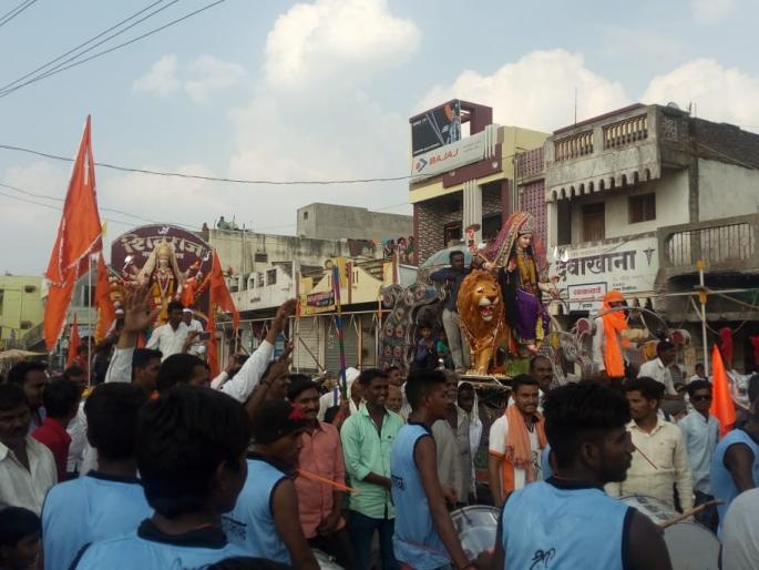 लोकमत न्यूज नेटवर्कवाशिम : वाशिमसह ग्रामीण भागात १९ आॅक्टोबर रोजी दुर्गादेवींना ढोल, ताशाच्या गजरात उत्साहात निरोप देण्यात आला. यावर्षी शहर व ग्रामीण भागात एकूण ४९० सार्वजनिक दुर्गोत्सव मंडळांची नोंद झाली असून त्यापैकी ४७४ दुर्गोत्सव मंडळांनी विधीवत दुर्गादेवीची स्थापना केली होती. गेले नऊ दिवस रास गरबा, दांडीयासह अनेक धार्मिक कार्यक्रमांनी गाजत असलेल्या नवरात्रौत्सवाची सांगताही १९ आॅक्टोबरला दुर्गामातेच्या विसर्जनाने झाली. विविध दुर्गामंडळांनी ढोल ताशाच्या गजरात ठेका धरत मिरवणुकीत सहभाग नोंदविला. शिरपूर येथे शुक्रवारी दुपारी १२ वाजतापासून उत्साहात नवदुर्गा मिरवणुकीला सुरुवात झाली. गावामध्ये एकूण १४ ठिकाणी सार्वजनिक नवदुर्गा उत्सव साजरा करण्यात आला. सर्वच मंडळांनी आकर्षक असे देखावे निर्माण केले होते. ढोल ताशाच्या गजरात अनेकांनी ताल धरला होता. काही मंडळांनी रथावर दुर्गादेवी विराजमान करून मिरवणुकीत सहभाग घेतला. रथावर विराजमान देवी सर्वांचेच लक्ष वेधून घेत होती. मिरवणुकीमध्ये भाविकांसह गावातील सर्वच राजकीय पक्षांचे पुढारी, व्यापारी व प्रतिष्ठित नागरिक उपस्थित होते.कारंजा लाड येथील दुर्गाविसर्जन १९ आक्टोबर रोजी शांततेत झाले. यावेळी शहरातील प्रमुख मार्गाने ढोल ताशाच्या गजरात मिरवणूक काढण्यात आली. शांतता व सुव्यवस्था अबाधित राहावी म्हणून पोलिसांचा चोख बंदोबस्त ठेवण्यात आला. नऊ दिवस मनोभावे पुजा करुन अनेक दुर्गोत्सव मंडळांनी धार्मिक, सामाजिक कार्यक्रम राबवित नवरात्रौत्सव साजरा केला.