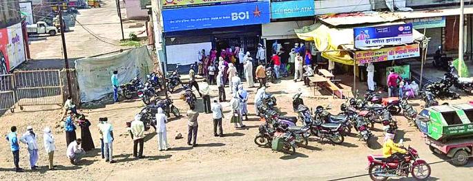 सोशल डिस्टन्सिंगचा फज्जा; बँकांसमोर नागरिकांची गर्दी कायम
