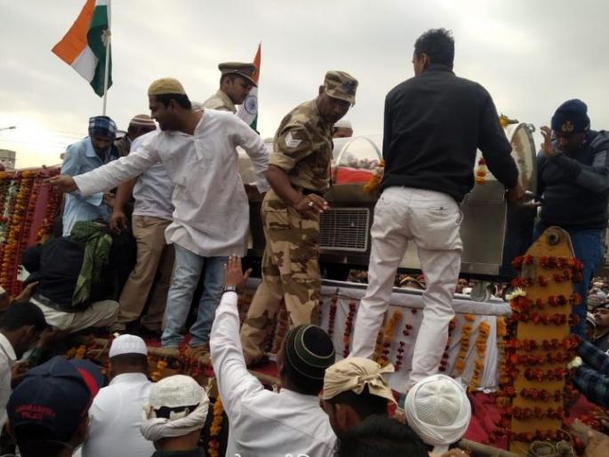 लोकमत न्यूज नेटवर्क कारंजा लाड : केंद्रीय औद्योगिक सुरक्षा बळ (सीआईएसफ) जवान तस्लीम सलीम मुन्नीवाले यांच्यावर शुक्रवारी (१७ जानेवारी) रोजी येथील बायपास जवळच्या मुस्लिम कब्रिस्थान येथे सकाळी ११ वाजताच्या सुमारास प्रशासनाच्यावतीने शासकीय इतमामात अंत्यसंस्कार करण्यात आले. त्यांच्या अंत्ययात्रेला जनसागर उसळला होता. ‘अमर रहें, अमर रहें, तस्लीम भाई अमर रहें’च्या घोषणांच्या निनादात या वीरास निरोप देण्यात आला. येथील गवळीपूरा मधील मूळ रहिवासी तस्लीम मुन्नीवाले हे केंद्रीय औद्योगिक सुरक्षा बळ (सीआईएसफ) मध्ये कार्यरत होते. कर्तव्यावर असताना मंगळवार, १४ जानेवारी रोजी सहकारी कर्मचाºयाने गोळी झाडून त्याची हत्या केली होती. सेवा बाजावतांना मृत्यू झाल्याची बातमी मिळाल्यानंतर परिसरात शोककळा पसरली होती. मागील दोन दिवसांपासून सर्व तरुण मंडळी सर्व व्यवहार बंद ठेवून अंत्यसंस्काराच्या तयारीत व्यस्त होते. जम्मू काश्मीर येथून १६ जानेवारीच्या रात्री विमानाने जवान तस्लीम चे पार्थिव नागपुरात दाखल झाले. त्यानंतर अमरावती मार्गे पार्थिव कारंजा आणण्यात आले. सर्वप्रथम मुन्नीवाले कुटुंबियांच्या घरी पार्थिव काही वेळ ठेवण्यात आले. त्य नंतर मुस्लिम विधीनुसार नमाजे जनाजा अदा करण्यात आली. तसेच अंतिम दर्शनकरिता कारंजा कृषि उत्पन्न बाजार समितीच्या आवरामध्ये पार्थिव ठेवण्यात आले होते. त्यानंतर शहरातील मुख्य मार्गावरून फुलांनी सजवलेल्या ट्रकमध्ये अंतीम यात्रा काढण्यात आली. दरम्यान केंद्रीय औद्योगिक सुरक्षा बळ (सीआईएसफ) व जिल्हा पोलीस प्रशासनातर्फे बंदुकीच्या तीन फैरी झाडून सलामी देण्यात आली. नागरिकांनी स्वयंफुतीर्ने आपली प्रतिष्ठाने तसेच सर्व व्यवहार बंद ठेऊन यात्रेत सहभाग नोंदवला. नगरपालिकेची सर्व शाळांना बंद ठेवण्यात आली होती.नागरिकांनी जागोजागी अभिवादनाचे फलक लावत श्रद्धांजली वाहिली. या ठिकाणी आमदार राजेंद्र पाटणी, काँग्रेस नेते मो.युसूफ पुंजानी, नगराध्यक्ष शेषराव ढोके, उपविभागीय अधिकारी अनुप खांडे, मुख्याधिकारी डॉ.अजय कुरवाड़े,उपविभागीय पोलीस अधिकारी संजय पाटील, नायब तहसीलदार विनोद हरणे,ठाणेदार एस.एम.जाधव यांच्यासह अनेक मान्यवरांनी त्यांना पुष्पचक्र अर्पण करून आदराजंली वाहिली. यावेळी पोलिसांचा चोख बंदोबस्त होता. जवान तस्लीम यांना अखेरचा निरोप देण्यासाठी सर्वधर्मीय हजारो नागरिक यावेळी उपस्थित होते.