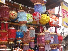 विविधरंगी आकाशकंदिल घेण्यासाठी नागरिकांची गर्दी मोठया प्रमाणात दिसून येत आहे. विशेष म्हणजे लोटस आकाशकंदिलाचे आकर्षण वाढले असून वेगवेगळ्या प्रकारचे हे आकाशकंदिल बाजारात विक्रीस आलेले दिसून येत आहेत.