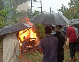 वाशिम : नशिबी असे कसे हे मरण; स्मशानभूमीअभावी पाऊसपाण्याने अर्ध्यावरती विझले सरण