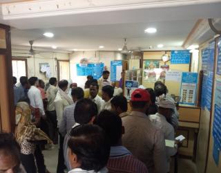 पीक कर्जाची रक्कम काढण्यासाठी शेतकऱ्यांची बँकांमध्ये तोबा गर्दी